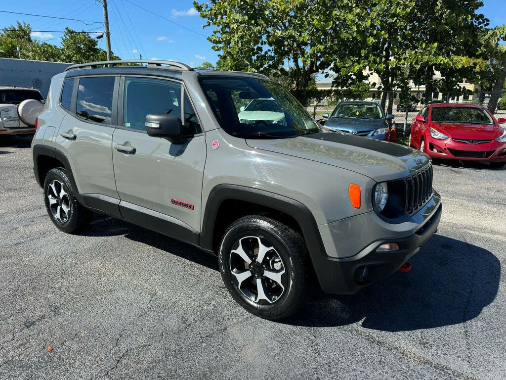 Overview, Make: Jeep, Model: Renegade, Year: 2020, Trim: Trailhawk 4WD, Body type: SUV / Crossover, Exterior color: Gray, Interior color: Gray, Mileage: 36,732 mi, Condition: Used, Fuel economy, Fuel tank size: 12 gal, Combined gas mileage: 24 MPG, City gas mileage: 22 MPG, Highway gas mileage: 27 MPG, Fuel type: Gasoline, Performance, Transmission: 9-Speed Automatic, Drivetrain: Four-Wheel Drive, Engine: 177 hp 1.3L I4, Horsepower: 177 hp, -Safety, ABS Brakes, Backup Camera, Curtain Airbags, Driver Airbag, Front Side Airbags, Passenger Airbag, Measurements, Doors: 4 doors, Front legroom: 41 in, Back legroom: 35 in, Cargo volume: 18 cu ft, -Options, Alloy Wheels, Android Auto, Bluetooth, CarPlay,